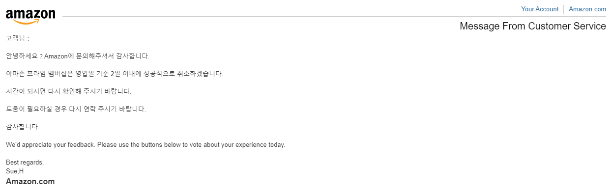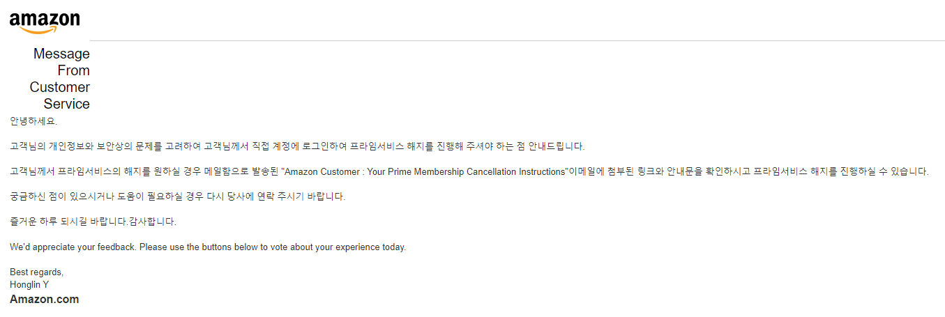 대충 '아 프라임 탈퇴하려는데 안됨. 너네가 직접 해줘' 라는 내용으로 보냈다.