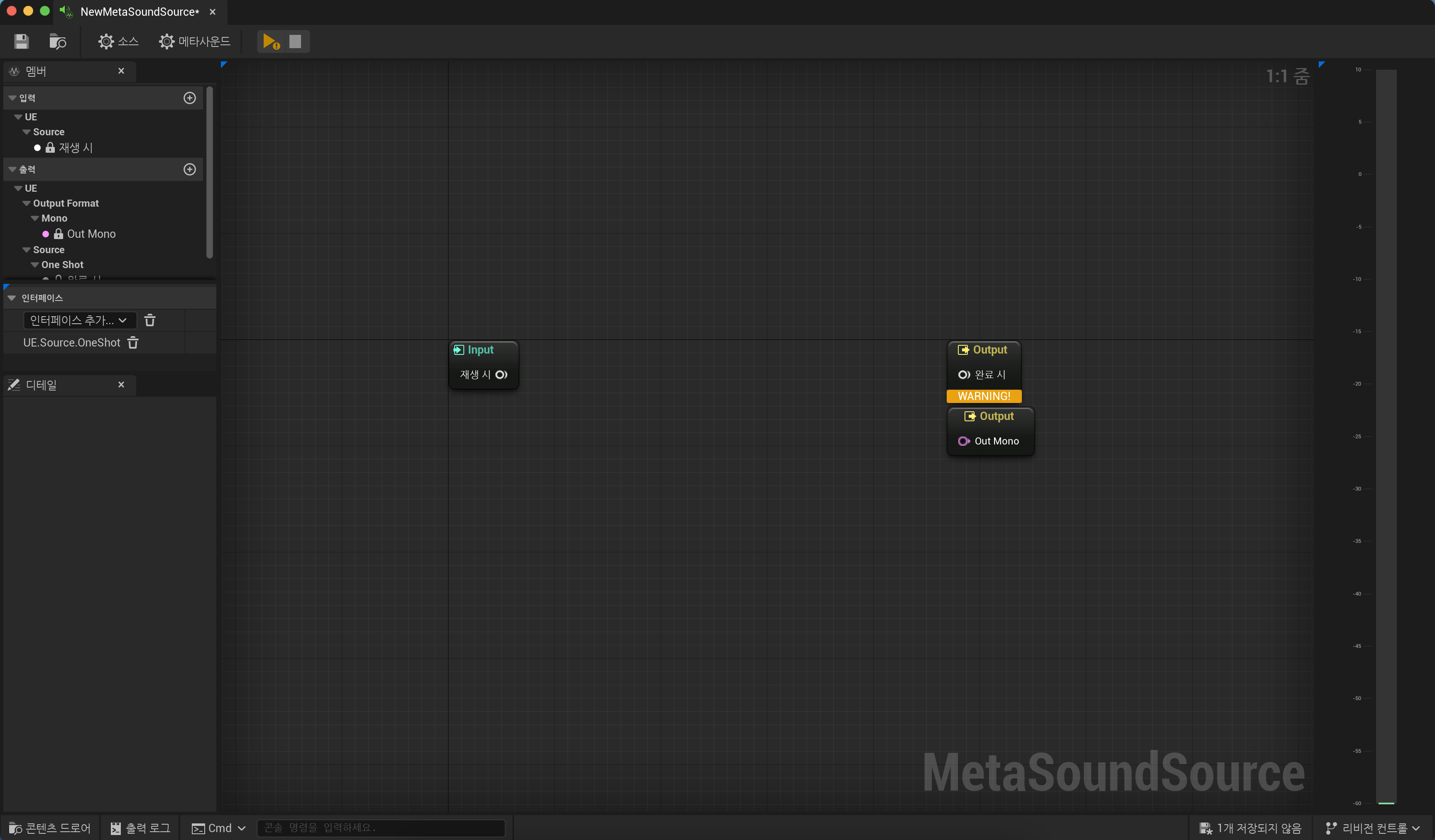 위 이미지에 있는 메타사운드 소스를 클릭하면 빈 메타사운드가 생성이 됩니다.